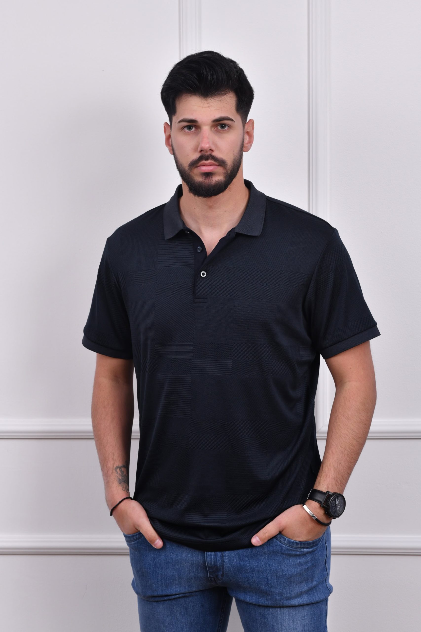 Tamno plava muška polo majica sa kratkim rukavima